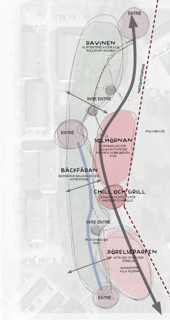 Utformningen bygger till stor del på den dialog vi har haft med barn och unga. Många av deras önskemål har tagits med i planeringen och kommer att prägla den framtida lekmiljön.