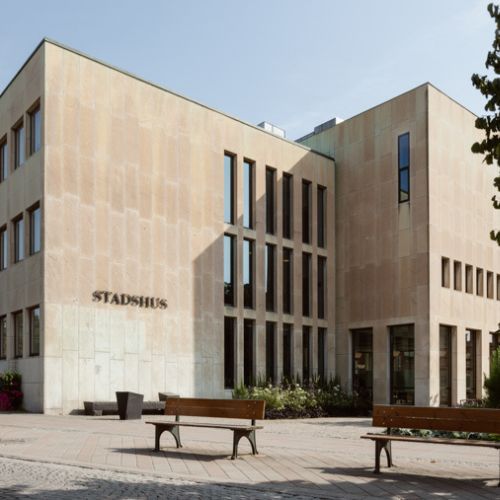 Bild på Falkenbergs kommuns stadshus.