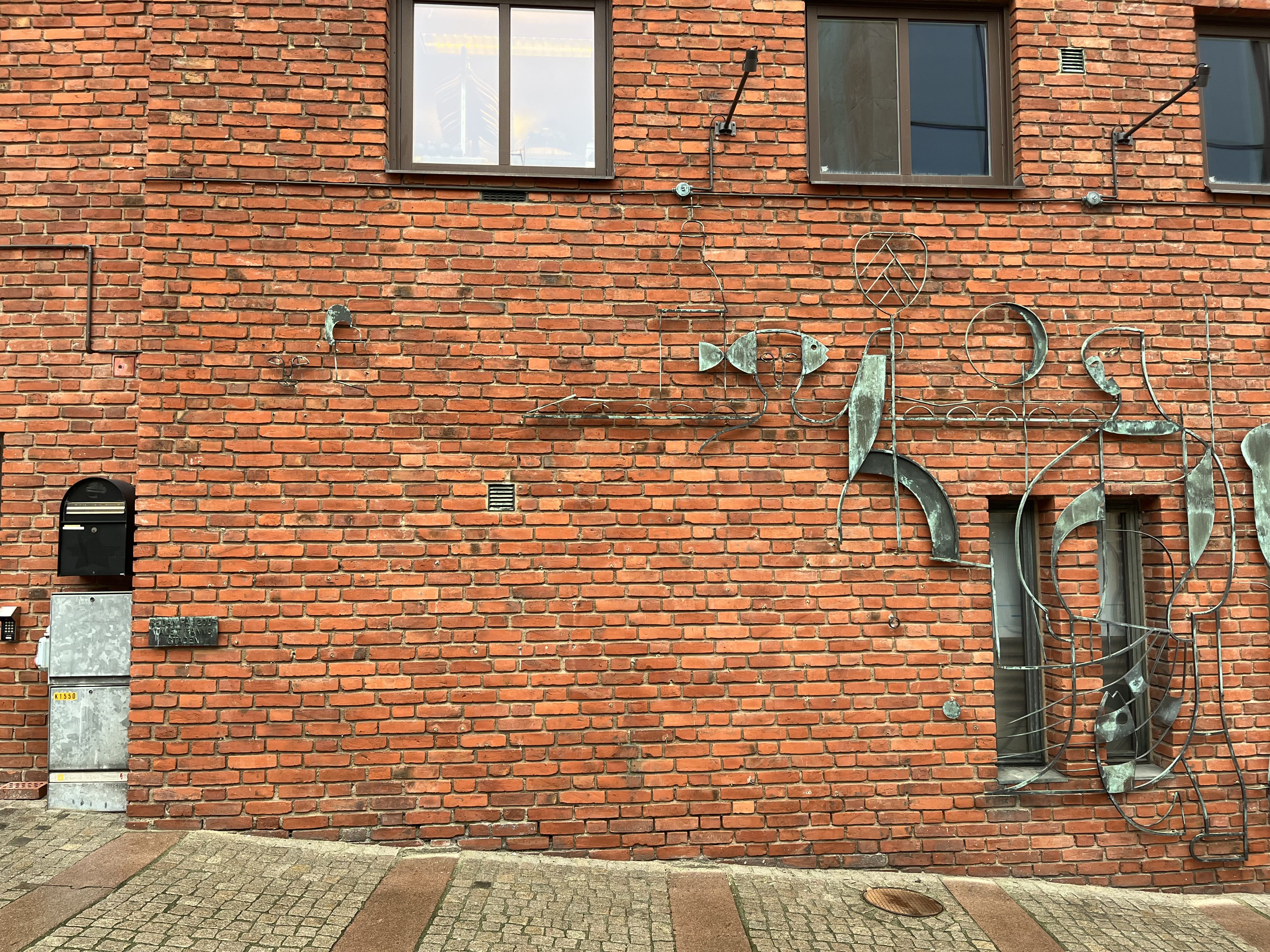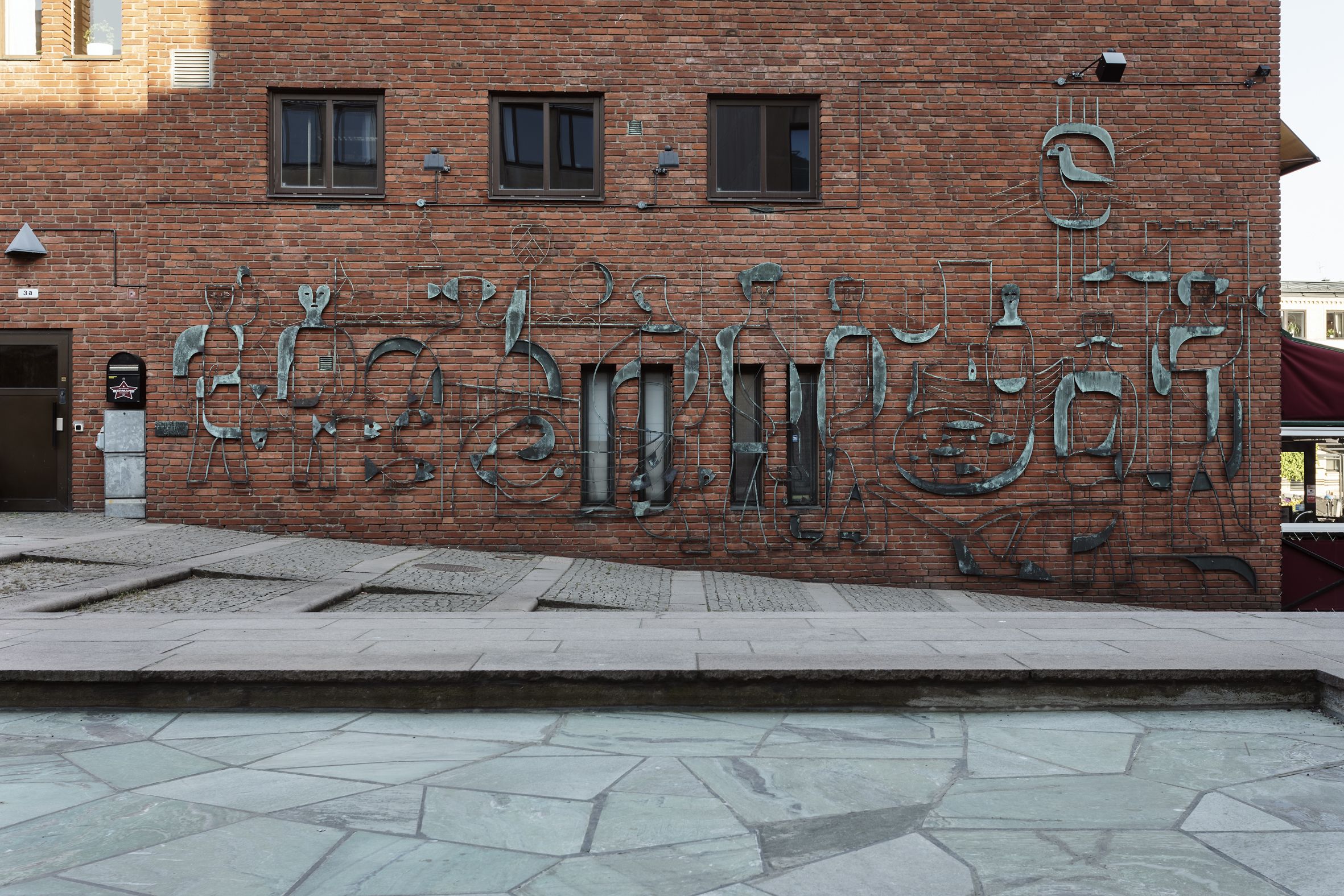 På Falkenbergs stadshusgård pryder Erik Olsons konsverk av koppar fasaden på väg till Kommunstyrelsesalen. Under fredagen upptäckte anställda på Falkenbergs kommun att det saknades en stor del av konstverket, som prytt väggen sedan 1959.
