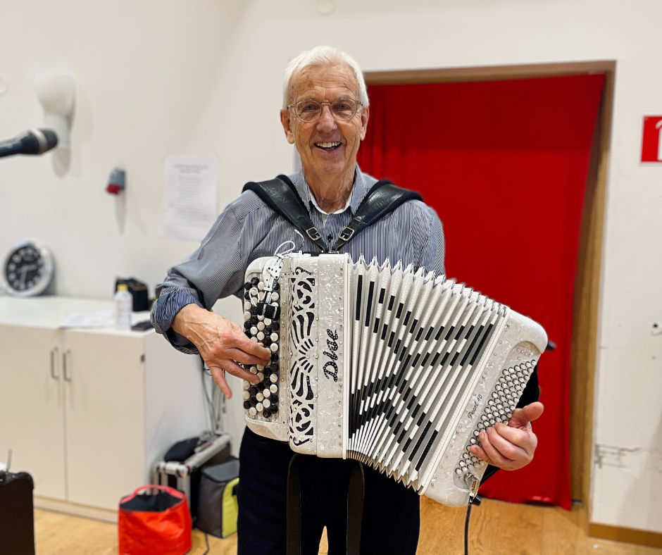 Det var full fart på Mölle efter tisdagens lunchservering – nu skulle det bli firande! Oceanen var fylld till sista plats långt innan Mölle-favoriten Bo Liljedahl klev upp på scen med sitt dragspel och bjöd på en rad svängiga favoriter, där publiken inte var sen att stämma upp i allsång. Bo Liljedahl konstaterar efter sitt framträdande att han varit med nästan sedan starten på Mötesplats Mölle.