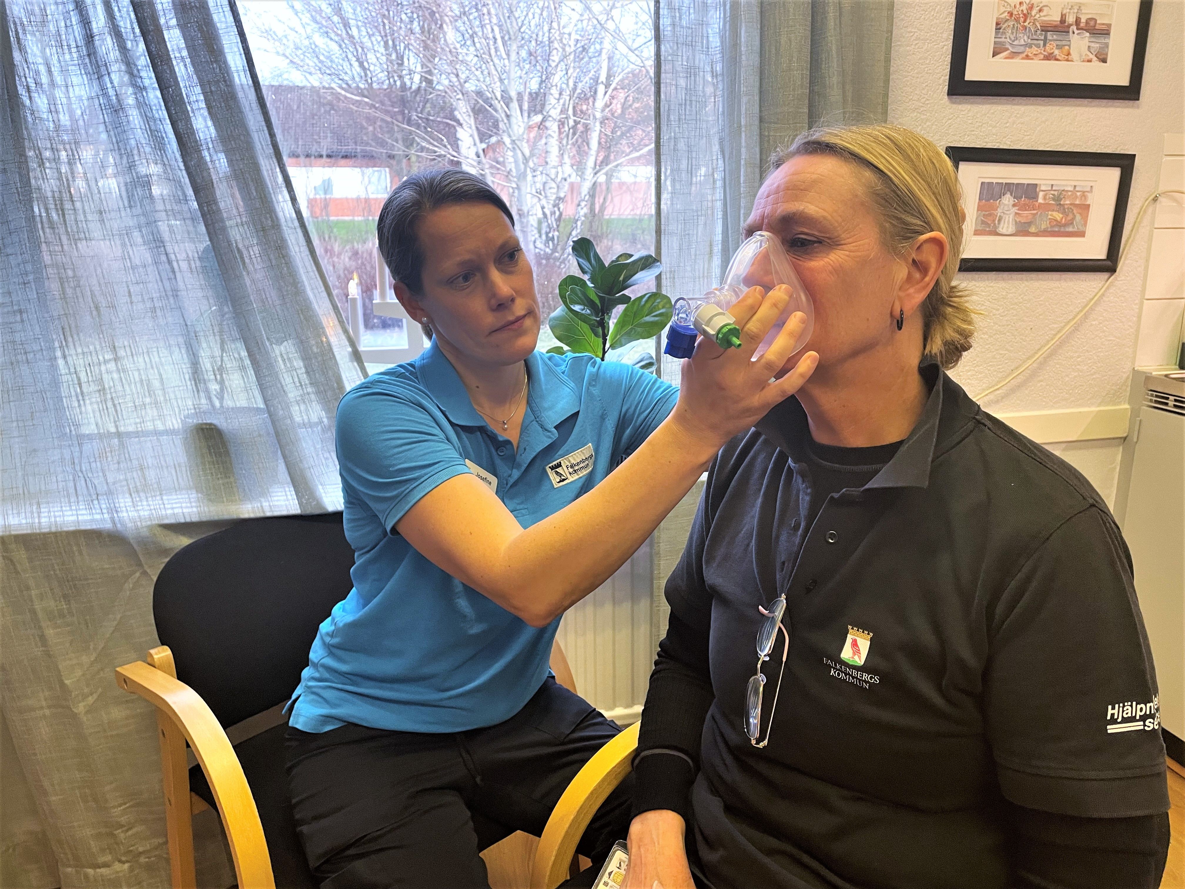 "Patienten" Ulrika får andas i masken under en liten stund.