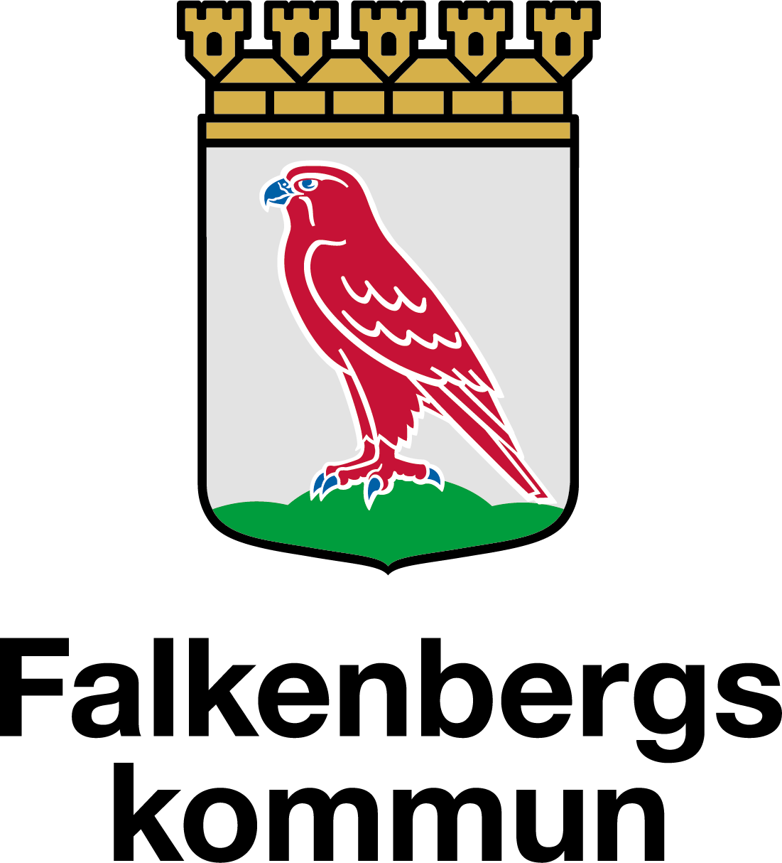 - Symbolen för Falkenbergs kommun (falken, bygger på kommunens vapen)